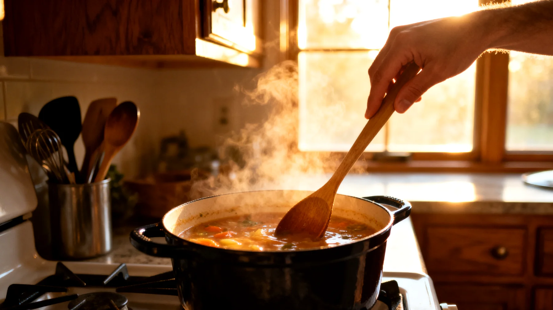 Met een pollepel die je handen op veilige afstand houdt van hitte en stoom, verdwijnt de constante achtergrondspanning die je misschien niet eens bewust was te ervaren. Je roert vaker en grondiger omdat het niet langer gepaard gaat met ongemak. Je controleert de consistentie van sauzen met meer aandacht omdat je niet hoeft te haasten om je hand weg te trekken.